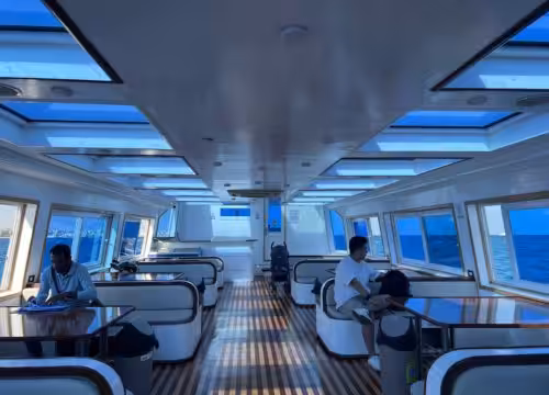 You will be picked up from your hotel by a tour guide and taken to the Panorama Submarine terminal., You will check in and be given a life jacket and a headset. than You will board the submarine and take your seat.